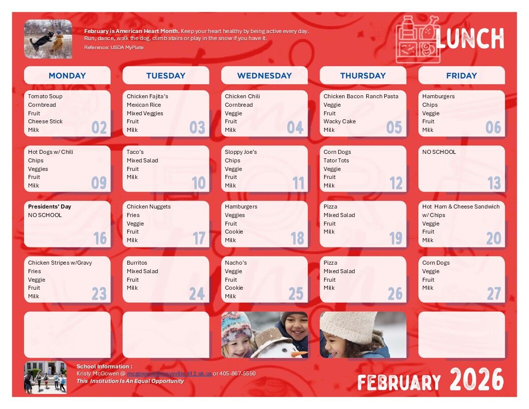 February 2026 Menus